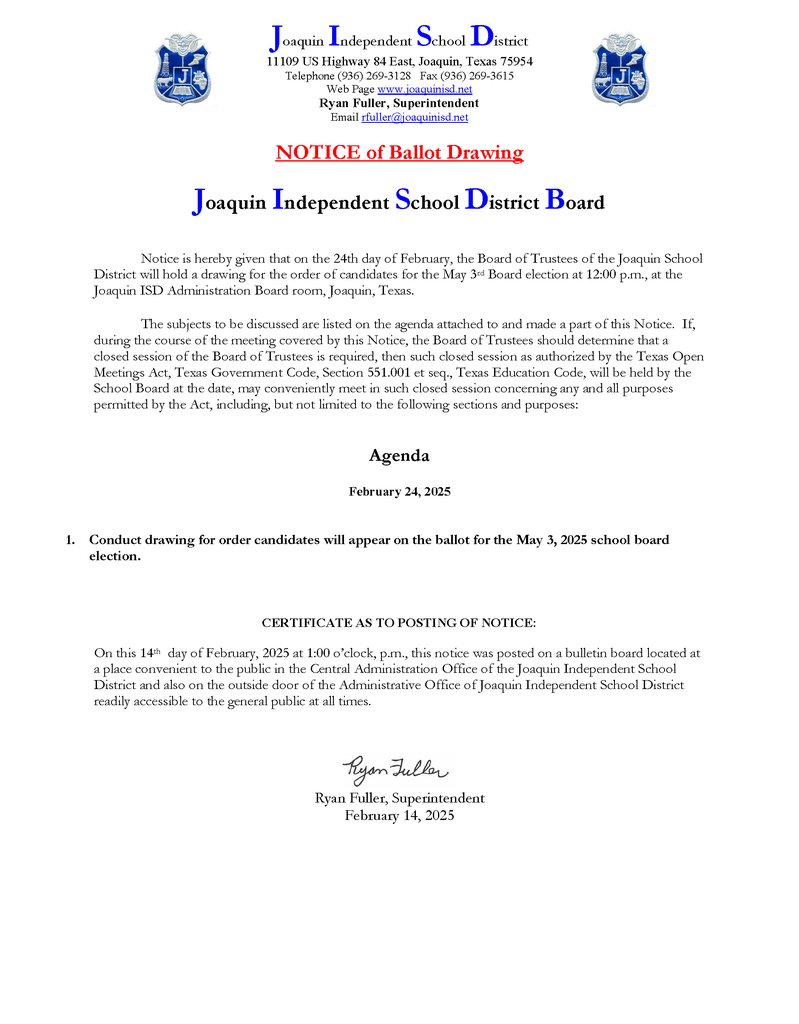JISD UNOFFICIAL ELECTION RESULTS 05/03/25